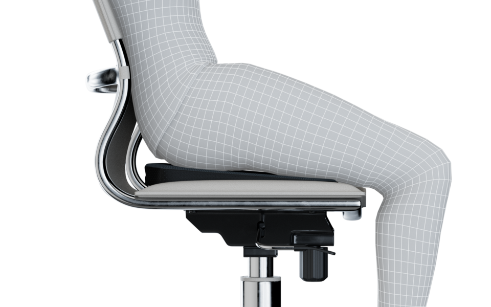 Most chairs keep your hips at a 90° angle. This position rotates the pelvis backward, flattens the lumbar curve, and increases passive loading on the spine.